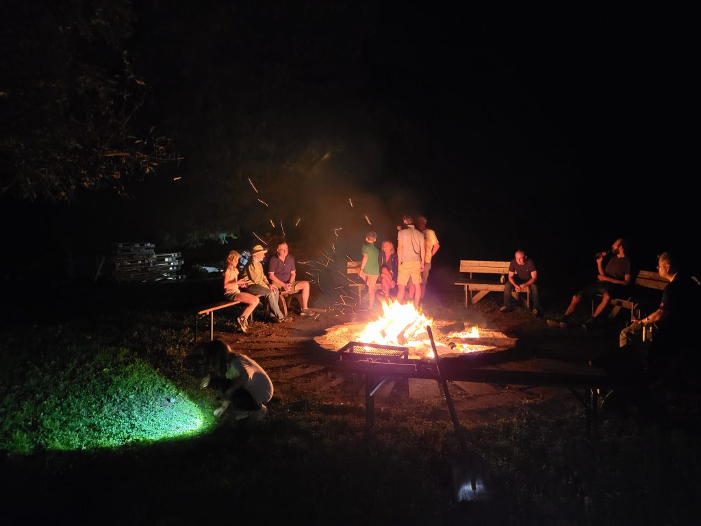 Die angenehm warmen Temperaturen und das Knistern des Lagerfeuers sorgten für einen sehr schönen Grillabend. Der Grill konnte mit Einbruch der Dunkelheit zur Seite gestellt werden und so war die Feuerstelle bereit für ein großes Lagerfeuer.