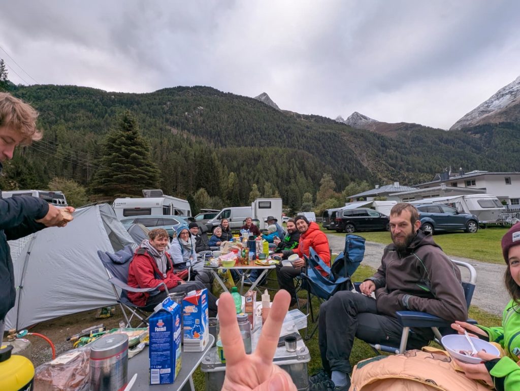Doch beginnen wir ganz von vorne: Auf dem wiederentdeckten Campingplatz in Huben wurden wir von einem bunten Strauß an Temperaturen empfangen. Von eiskalten Momenten über sonnig-warme Stunden bis hin zu regnerisch-nassen Kältephasen war alles dabei. Die Ötz und Venter Ache hatten in diesem Jahr relativ wenig Wasser. Es war eine wahre Kunst, sich geschickt um die Steine zu schlängeln. Am ‚Champions Killer‘ gab es nichts desto trotz ausreichend Wasser und so konnten sich einige Mutige ins kühle Nass stürzen.