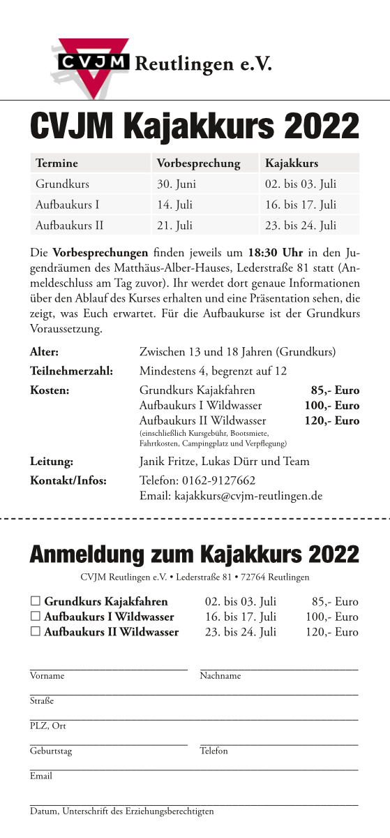 Kajakkurs Einlegeblatt 2022